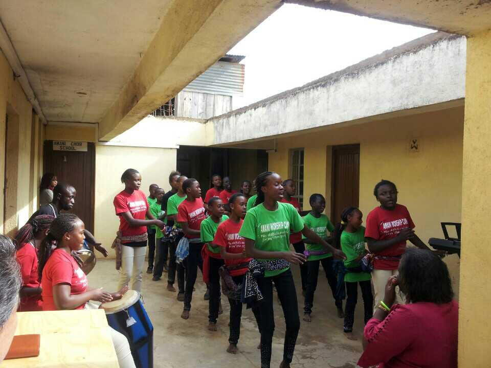 2014년 나이로비 근교 주자지역 2층 작은 연습실에서 케냐 전통춤 'Aooo!!'를 드럼과 스틱, 쉐이커와 함께 열심히 연습하고 있다